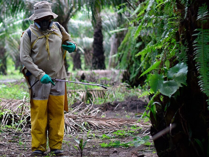 Si se requiriera aplicar un control de plagas con productos químicos, siempre se evaluará aquellos que tienen toxicidad baja, de etiquetas azul o verde con aplicaciones focalizadas (ubicación precisa dentro de la plantación) y no aplicaciones generalizadas a toda la plantación.