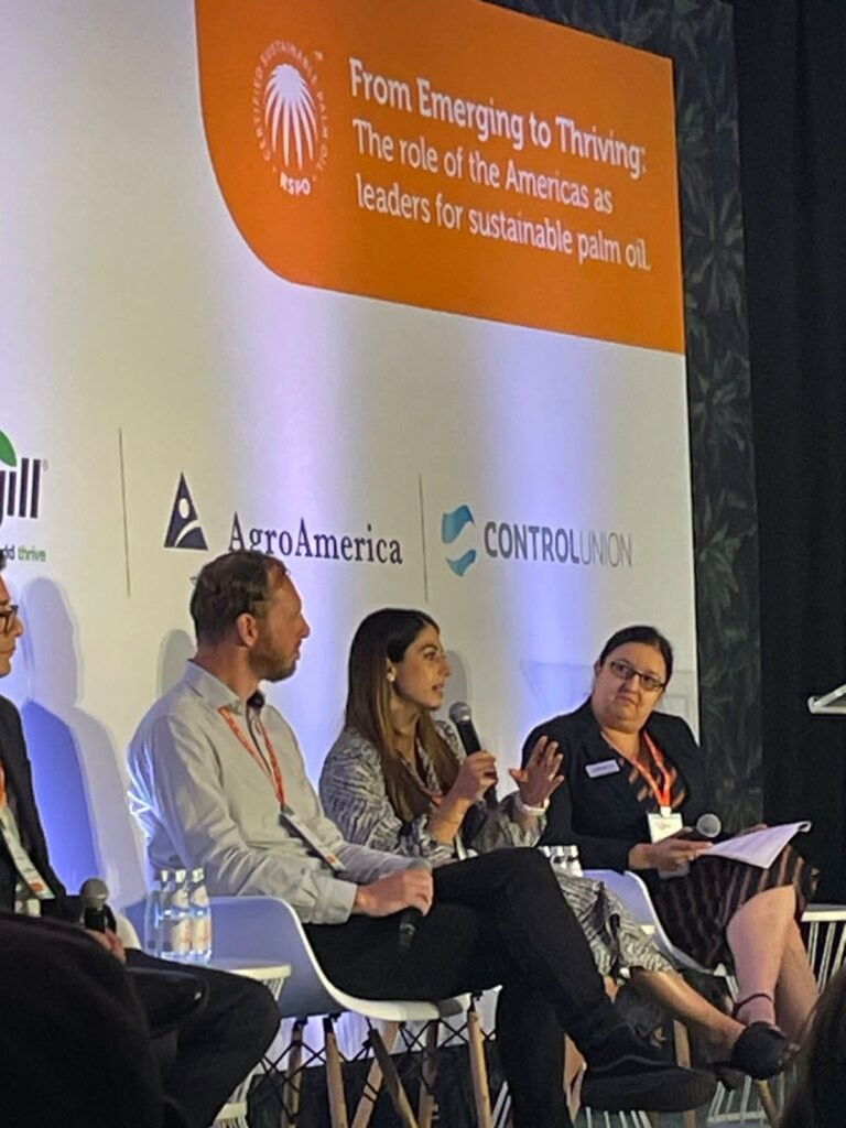 Irene Aycinena, Gerente de Aseguramiento de Sostenibilidad, participó en el Foro "Verifying what matters" compartiendo sobre nuestras acciones en sistemas de cumplimiento y trazabilidad del aceite de palma.